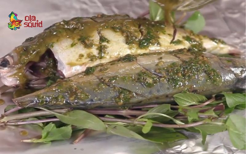 Cách thực hiện món cá bạc má nướng lá quế như sau: