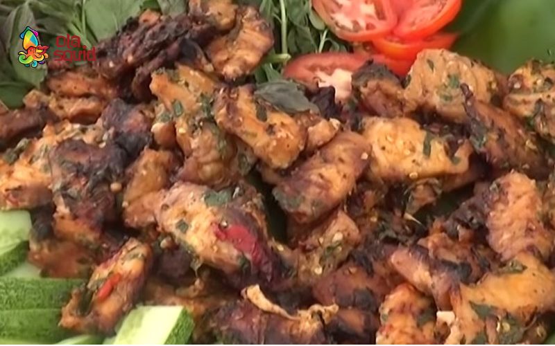 - Cá cờ nướng sa tế có vị cay nhẹ, thơm nồng lá lốt, thịt cá mềm ngọt, rất ngon khi ăn kèm rau sống, dưa leo, cà chua và chấm nước mắm tỏi ớt.