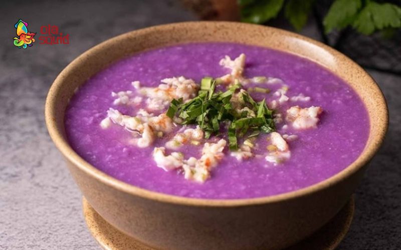 - Khoai môn và củ dền gọt vỏ, rửa sạch rồi xay mịn. Khi cháo đạt độ sánh, bạn cho cá hồi và rau củ vào khuấy đều, đun sôi nhẹ rồi tắt bếp.