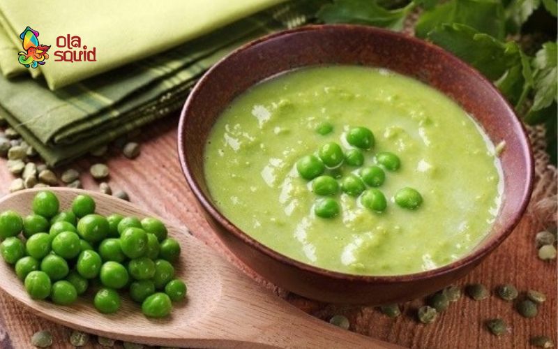 - Đậu Hà Lan luộc chín, bóc bỏ vỏ rồi xay nhuyễn.