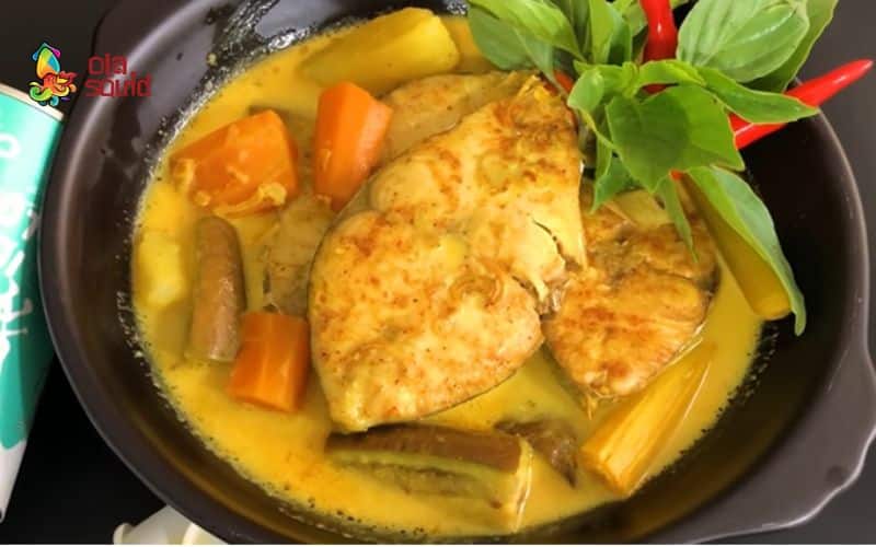 - Bước 6: Cho cà ri ra tô, rắc lá quế để tạo mùi thơm. Món ăn béo ngậy, hấp dẫn và bạn có thể dùng kèm với cơm, bún, hủ tiếu hay bánh mì đều ngon.