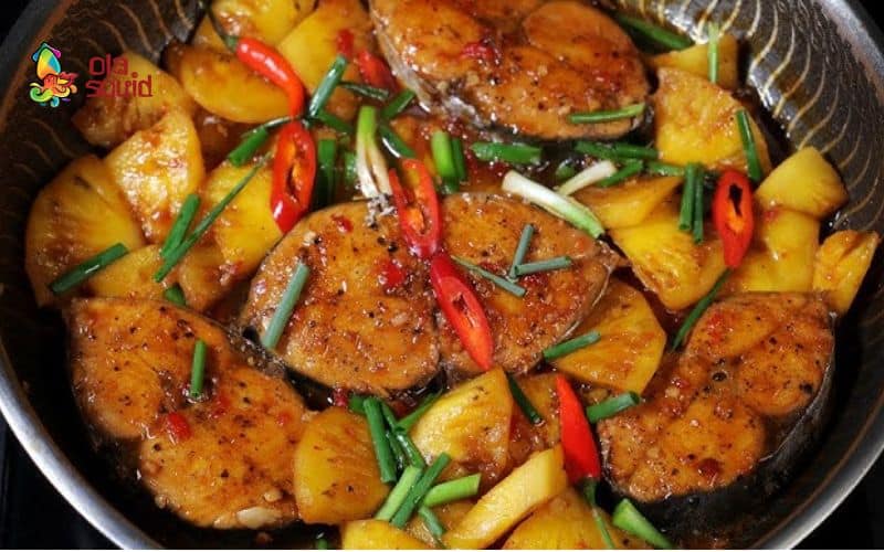 - Bước 5 – Hoàn thiện món ăn: Cuối cùng, bạn gắp cá ra đĩa, thưởng thức khi còn nóng. Cá thu kho dứa có vị chua ngọt hài hòa, thơm phức, chắc thịt và cực kỳ đưa cơm.