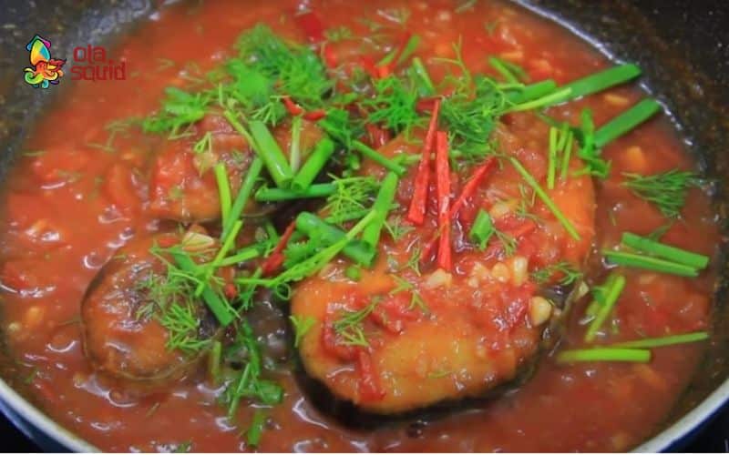 - Bước 5: Cuối cùng, bạn gắp cá ra đĩa, chan sốt cà lên trên và trang trí bằng ớt sợi hoặc hành lá. Món cá thu sốt cà chua hoàn thành với màu sắc hấp dẫn, hương vị đậm đà, rất đưa cơm.