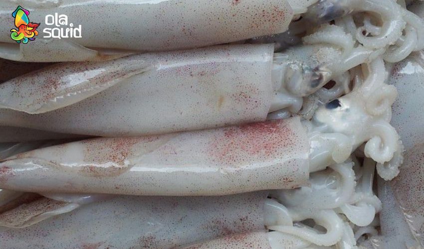 - Màu sắc: Thân mực có màu trắng đục hoặc hơi hồng nhạt, lớp da ngoài còn nguyên vẹn, không bị bong tróc hay biến màu nâu xám.