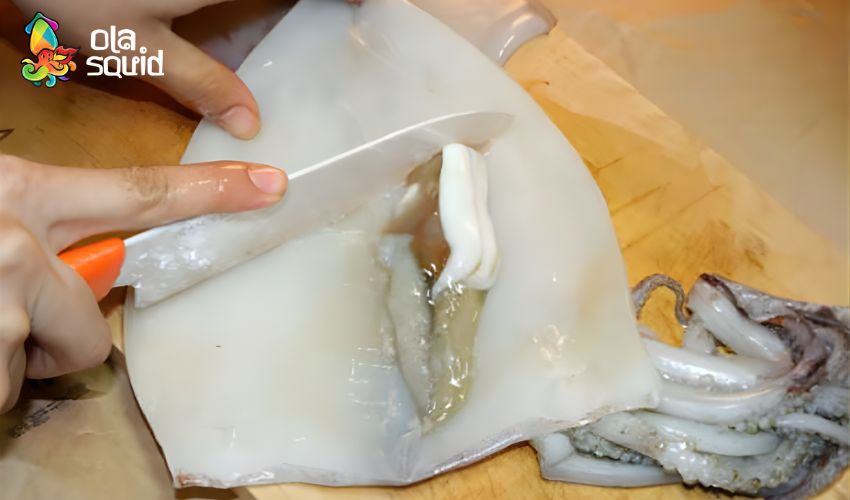 Bước 1: Sơ chế mực – kỹ thuật xẻ và làm sạch đúng cách