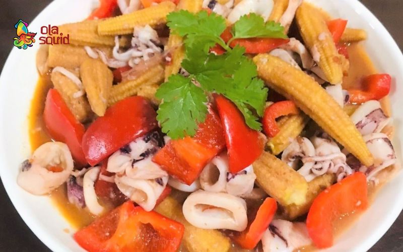 3.7. Mực xào sa tế với ớt chuông và bắp non
