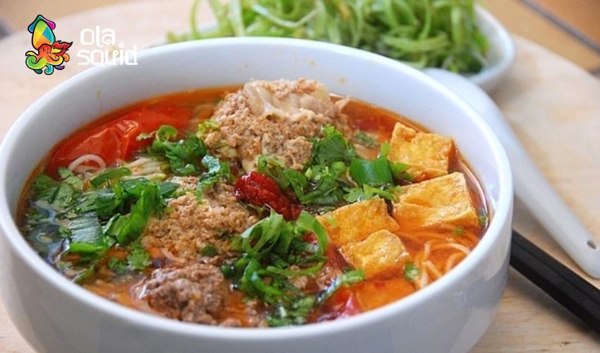 Bún riêu cua là món quen thuộc của ẩm thực Việt, nước dùng thanh ngọt từ cua, vị chua nhẹ cà chua, ăn kèm rau sống rất dễ ghiền.