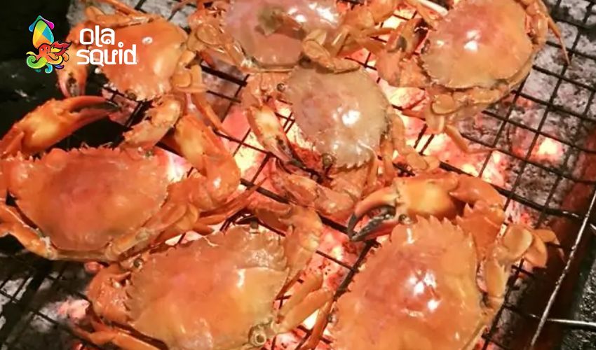 Cua nướng than hồng là món khoái khẩu nhờ lớp vỏ cháy xém thơm lừng, thịt cua ngọt chắc và giữ trọn vị biển tự nhiên.