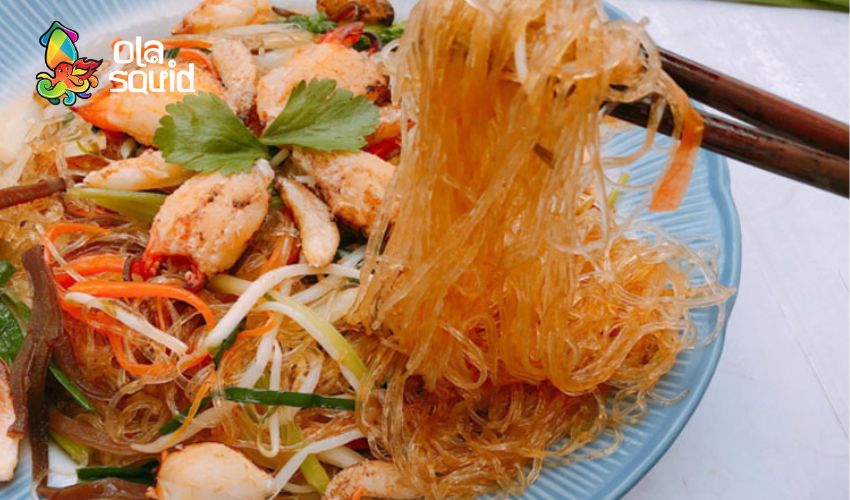 - Đảo đều tay đến khi miến trong, săn lại. Rắc hành lá, rau mùi, tiêu rồi tắt bếp.
