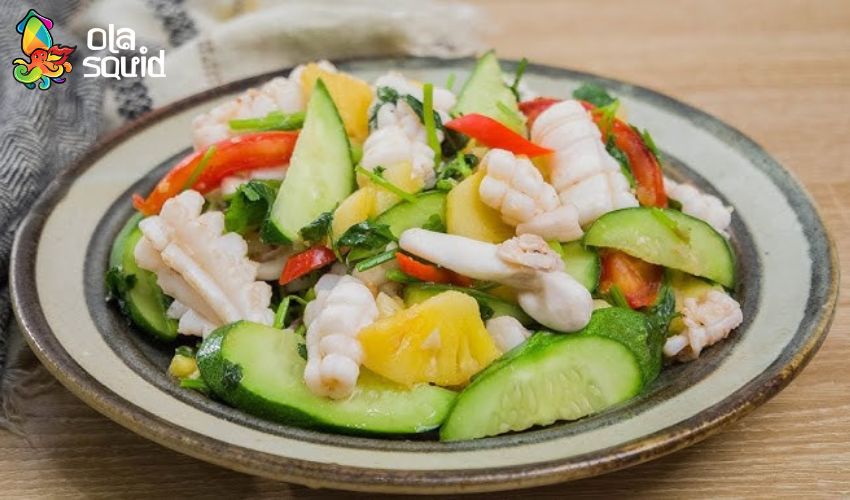 Bên cạnh dưa leo, bạn có thể kết hợp mực với nhiều loại rau củ khác để tạo sự mới mẻ: