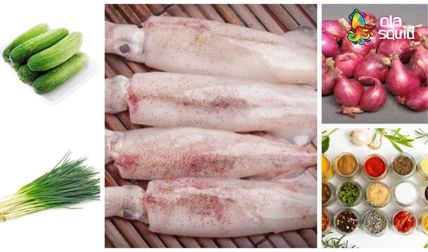 Nguyên liệu tươi ngon cho món mực xào dưa leo.
