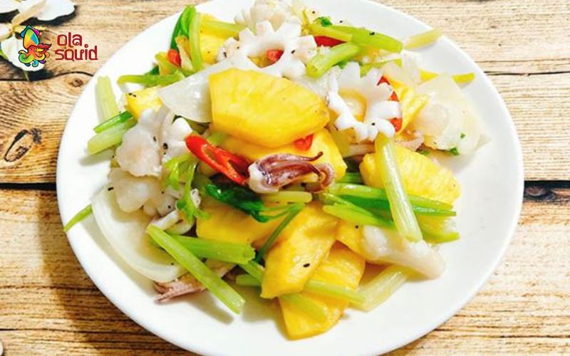 Mực xào dứa là món ăn mang hương vị hài hòa giữa vị ngọt của biển và vị chua thanh tự nhiên từ dứa chín. Sự kết hợp khéo léo giữa mực giòn sần sật và dứa mềm mọng nước với chút cay cay của ớt làm cho món ăn đậm đà, bắt mắt hơn. Thưởng thức mực xào dứa cùng cơm trắng nóng hổi, bạn sẽ cảm nhận rõ vị chua ngọt dịu dàng lan tỏa và ăn hoài không thấy ngán.