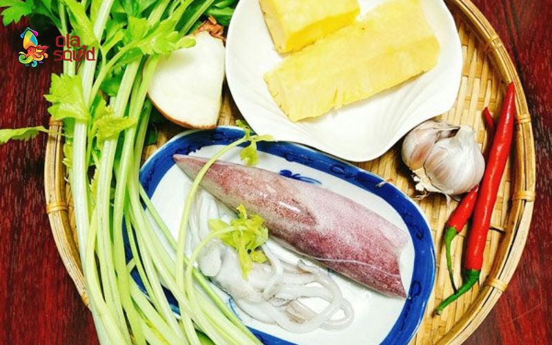 Nguyên liệu cần có để làm mực xào cần tây hành tây