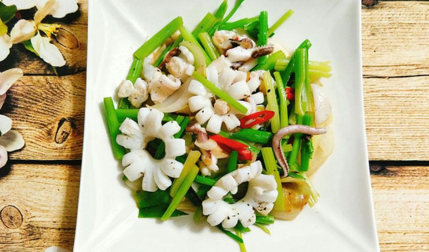 Lợi ích sức khỏe của món mực xào hành tây cần tây