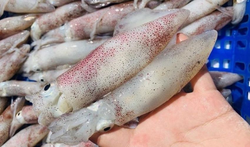 • Dùng tay ấn nhẹ vào thân mực, nếu thấy thịt săn chắc, không bị mềm nhũn hay chảy nước là dấu hiệu mực còn tươi.
