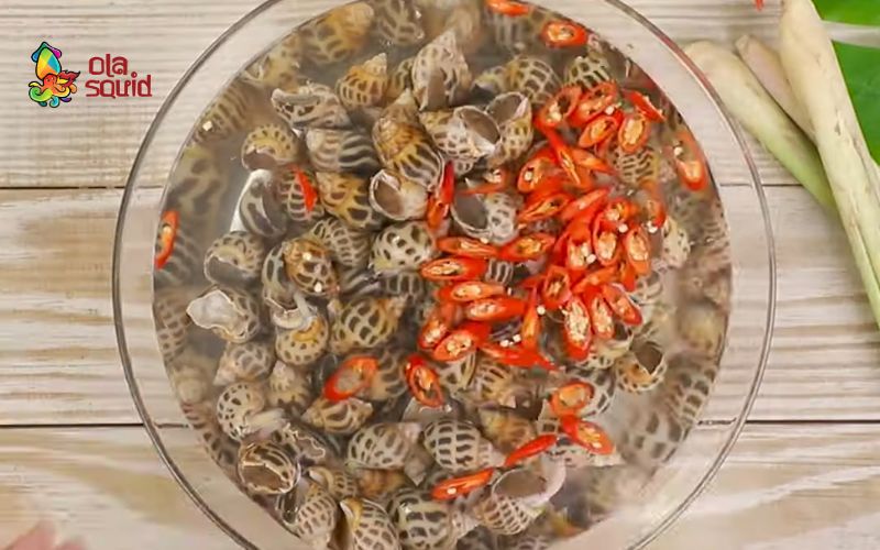 - Ngâm với chanh hoặc giấm: Tiến hành pha nước cùng một ít chanh hoặc giấm để khử mùi tanh và giúp ốc sạch hơn trước khi nấu.
