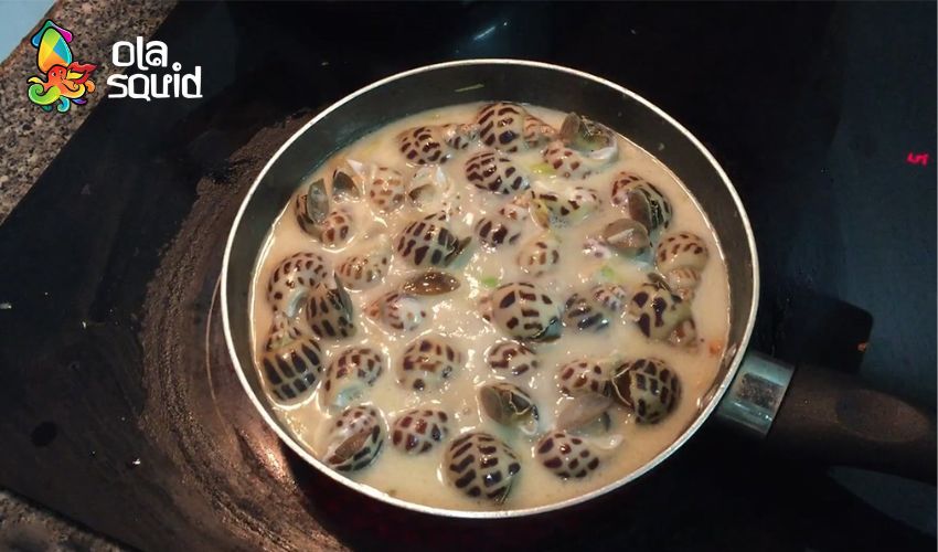Nằm trong nhóm các món ăn từ ốc hương có độ béo đặc trưng, món bơ dừa mang đến cảm giác mềm, ngậy, thơm nhưng vẫn giữ được vị ngọt của thịt ốc.