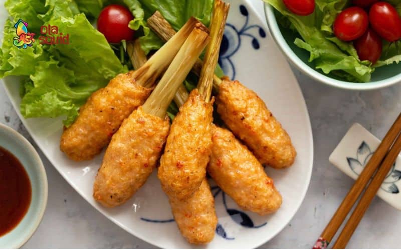Chạo tôm bọc sả được nướng thơm nức mũi